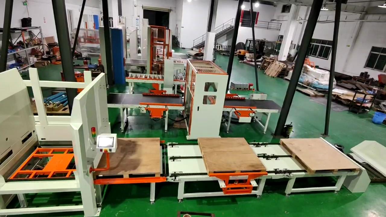 自动化开箱机+封箱+码垛流水线2